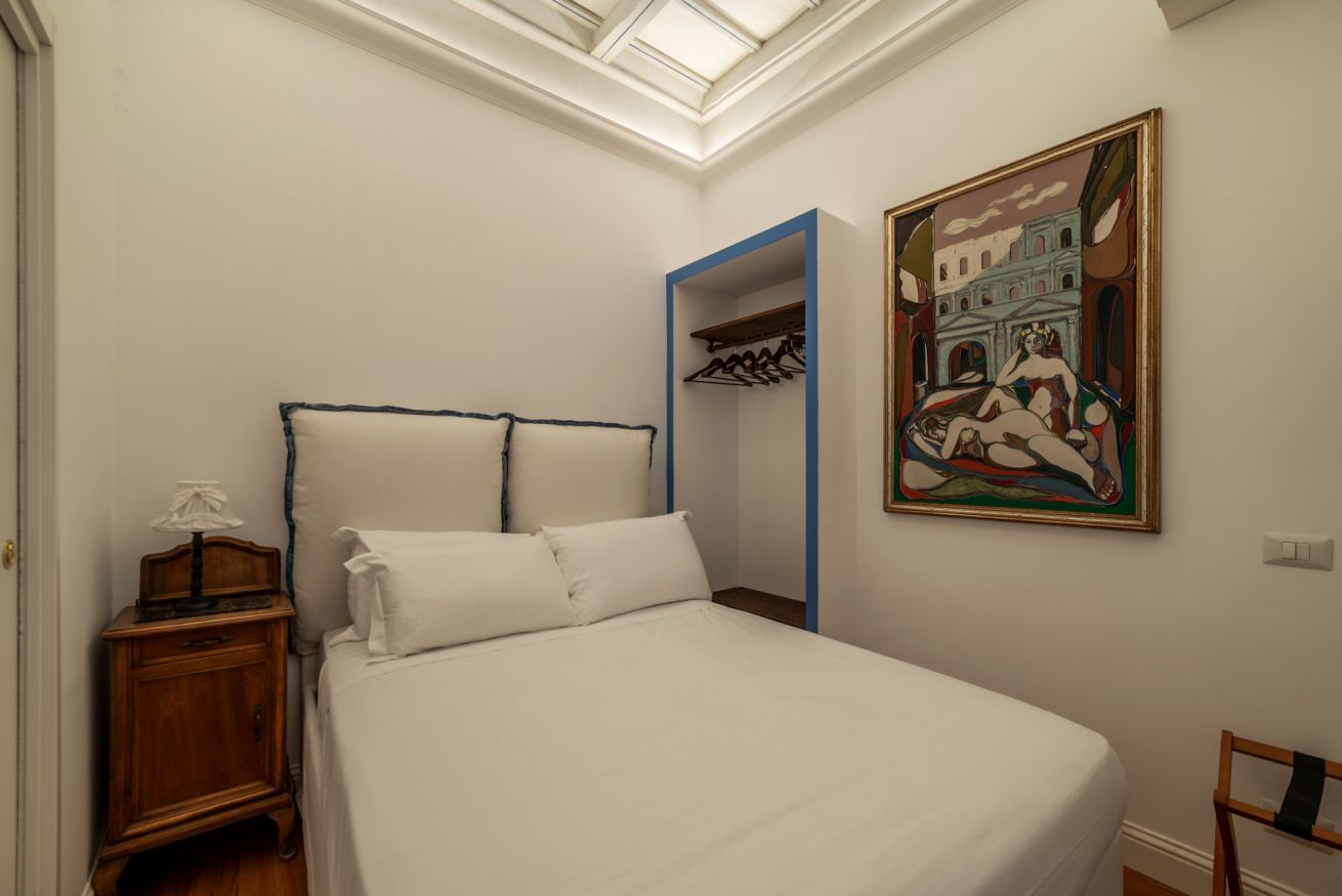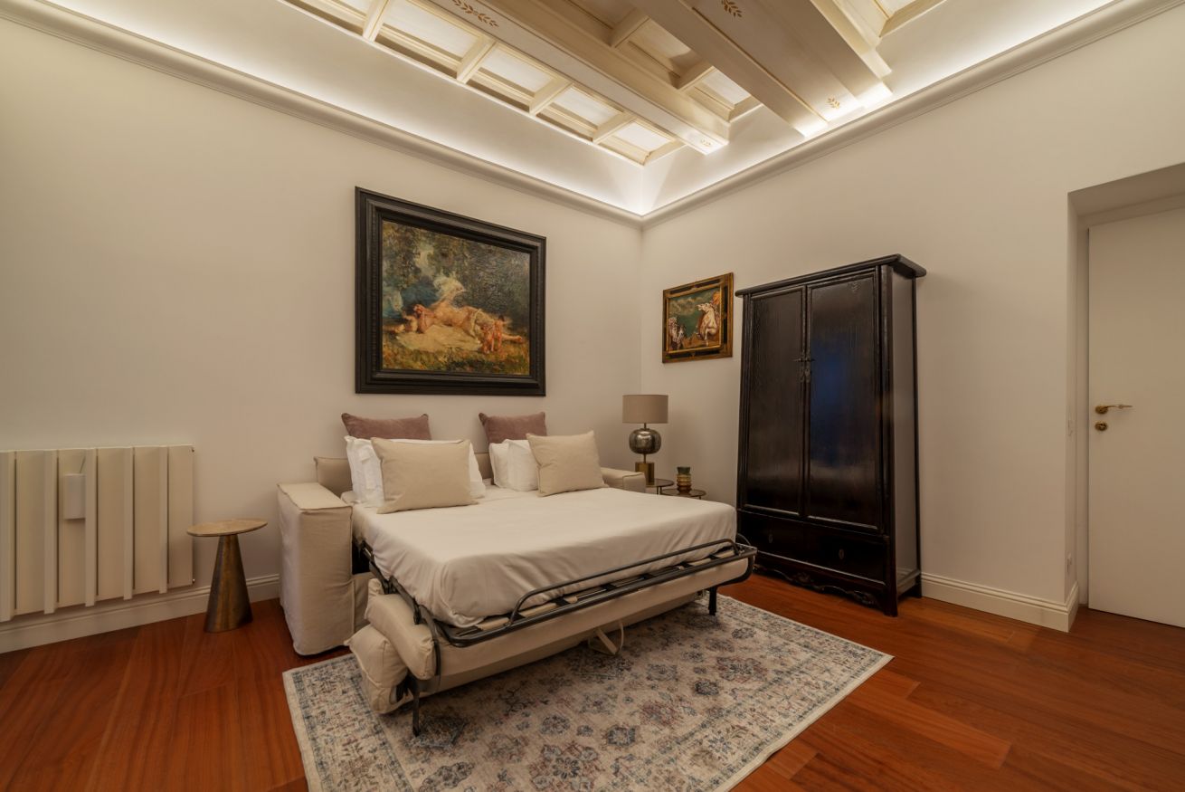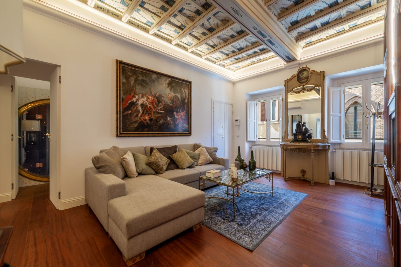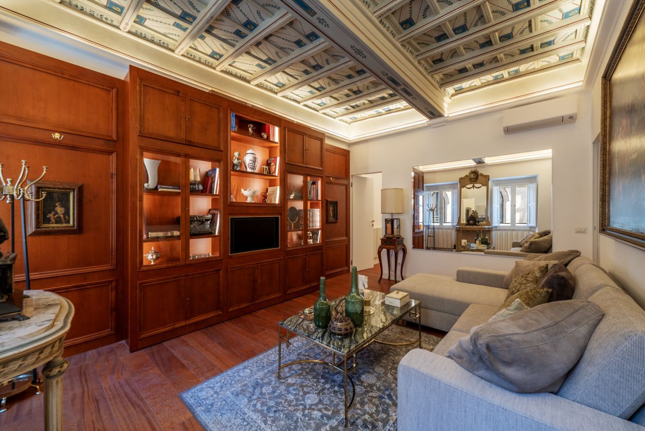 Located on the second floor (without elevator) of an elegant building at number 55 Via del Babuino — the legendary shopping street of the Eternal City — this exclusive apartment welcomes up to six guests in a space defined by refined architectural design and timeless charm.