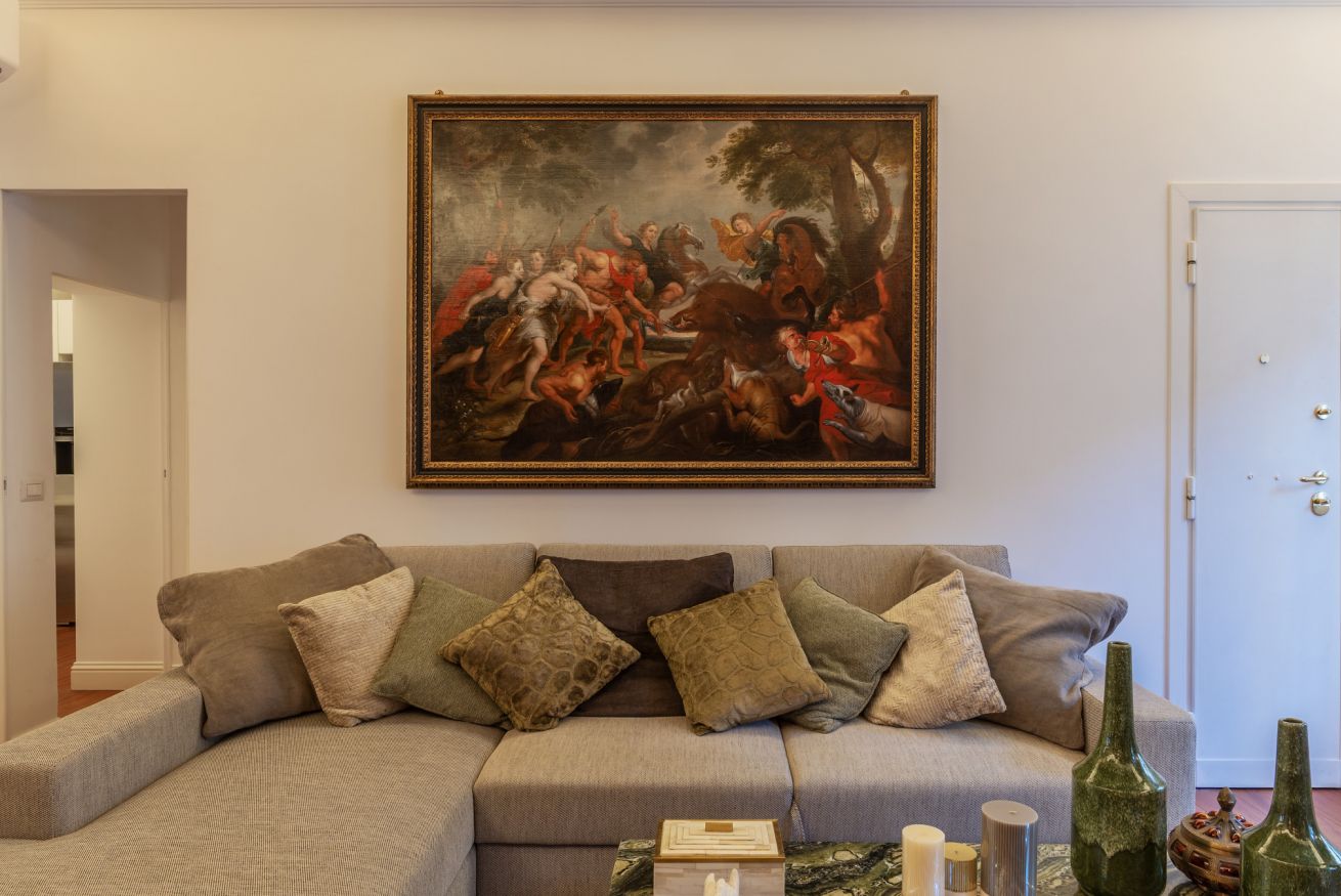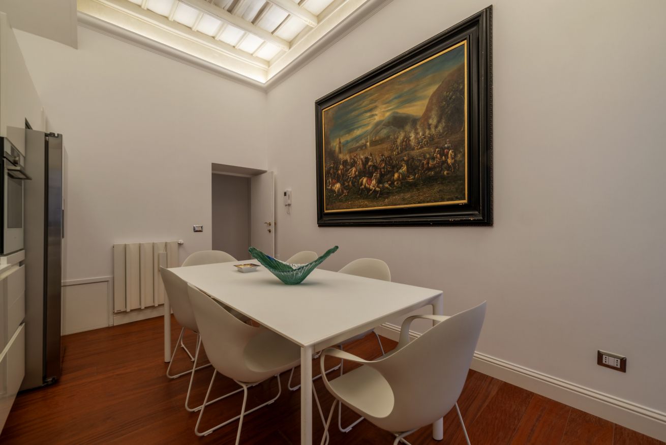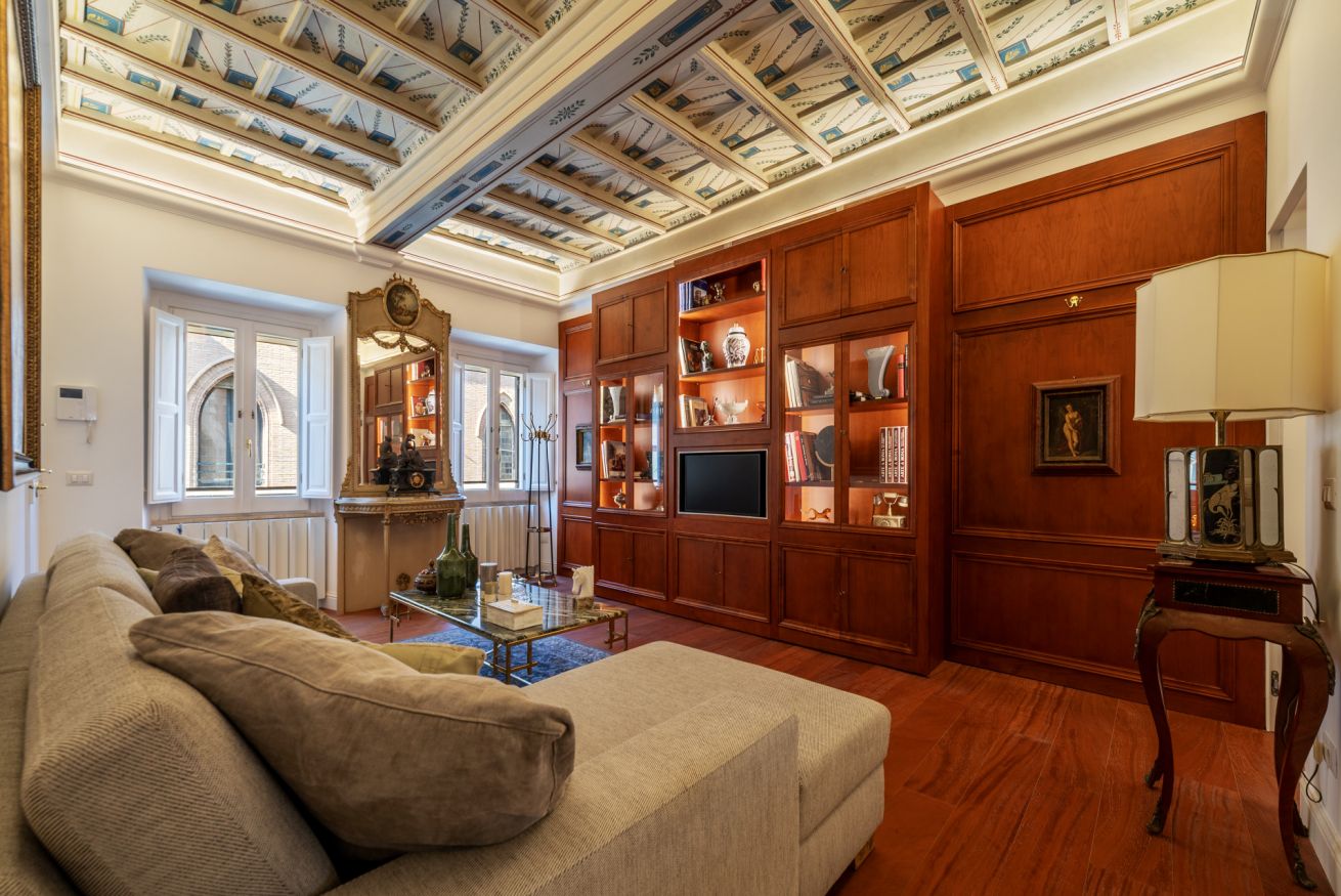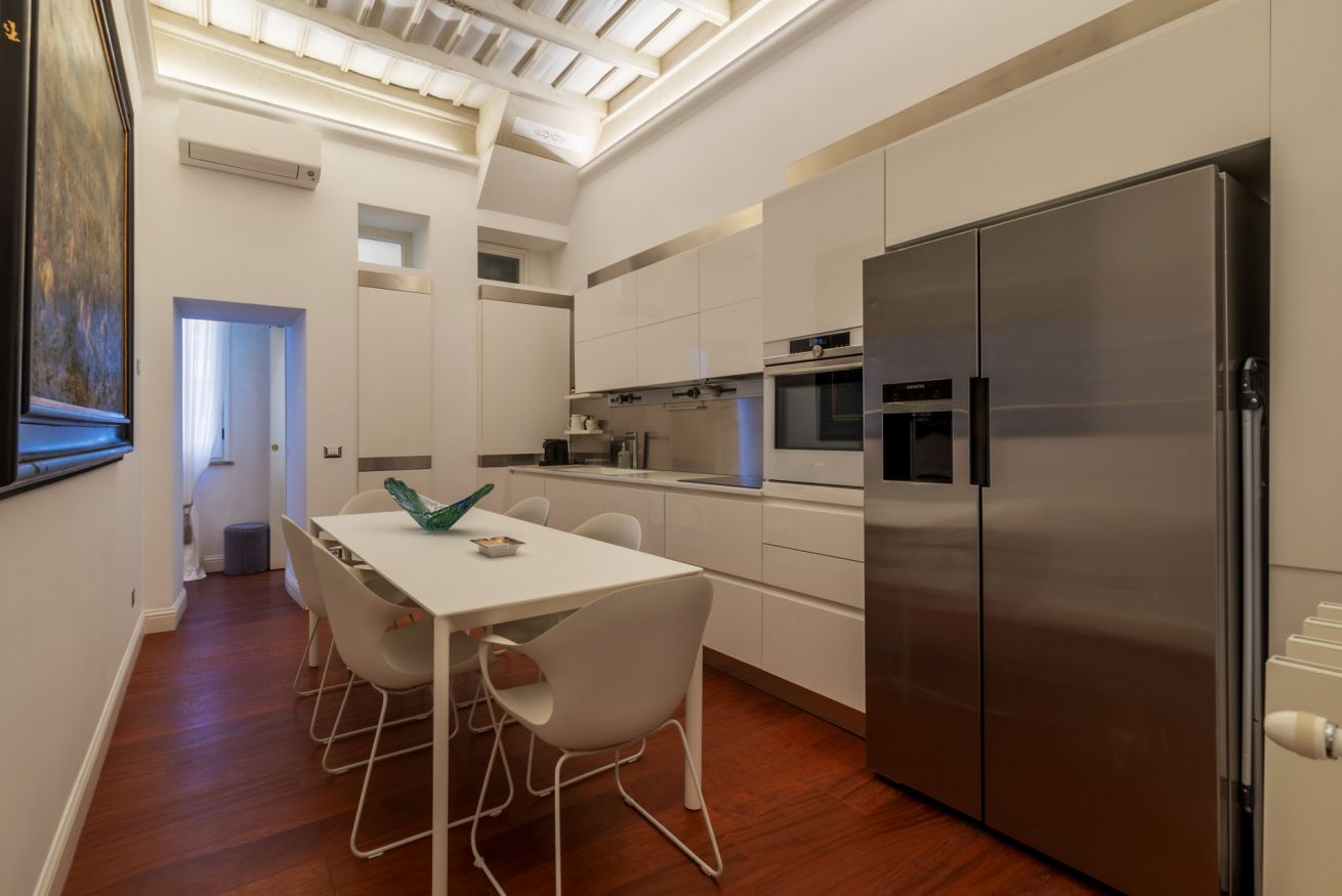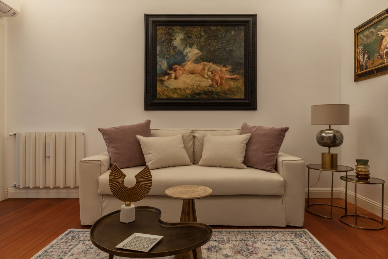 Located on the second floor (without elevator) of an elegant building at number 55 Via del Babuino — the legendary shopping street of the Eternal City — this exclusive apartment welcomes up to six guests in a space defined by refined architectural design and timeless charm.