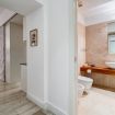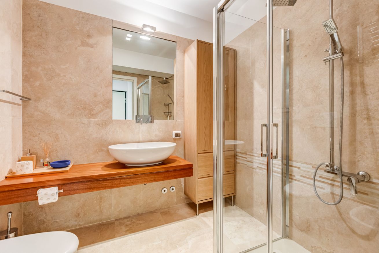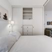 Back inside, the completely restructured bathroom boasts a bathtub that also functions as a shower, while the actual bedroom features ample closet space, ensuring you can unpack and settle in comfortably.