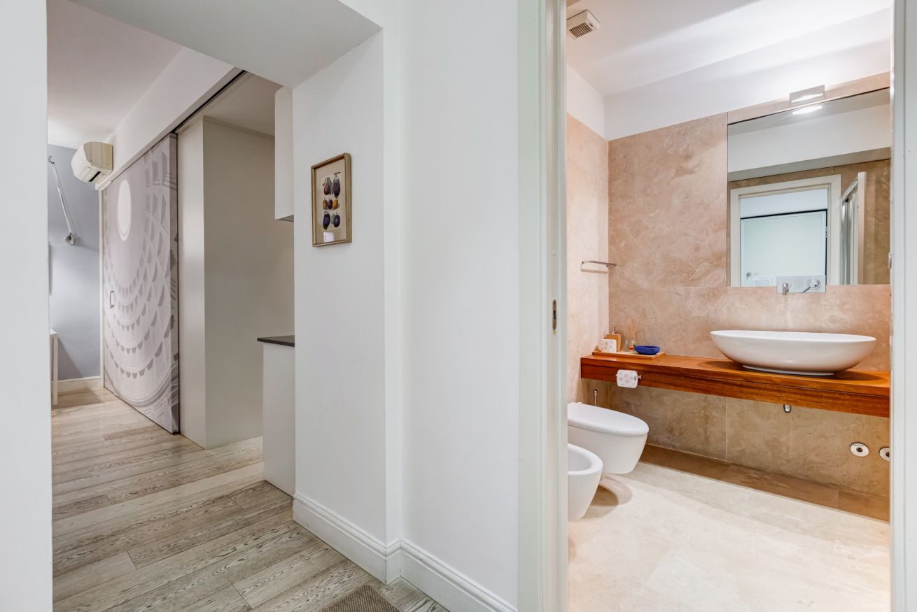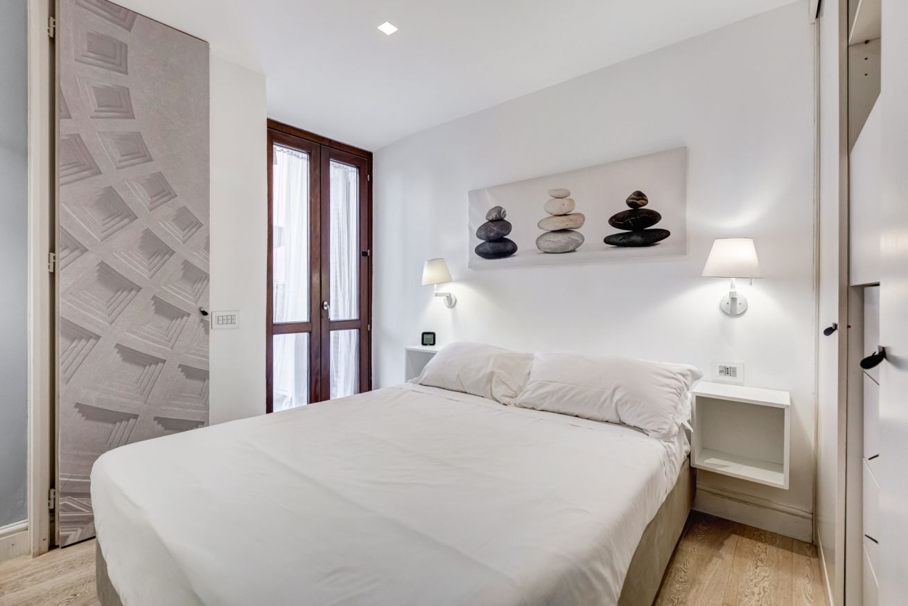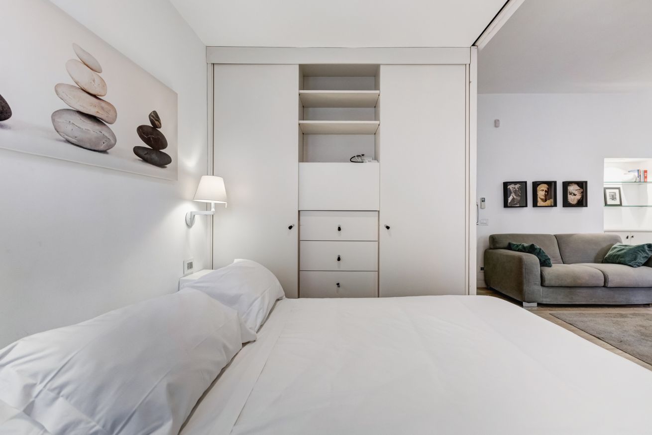 Walking distance from the subway stop at Barberini (reachable in under 10 minutes from the main train station at Roma Termini), this studio was cleverly redone to maximize space while still offering some small luxuries to those who just need a place to crash at the end of long days spent exploring, but still want that place to look carefully designed with a modern traveler in mind.