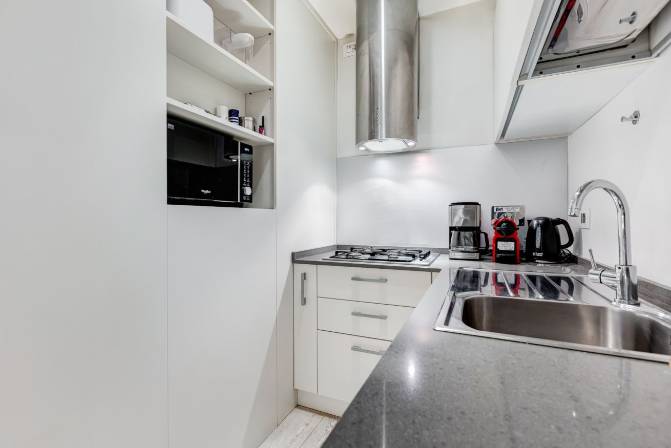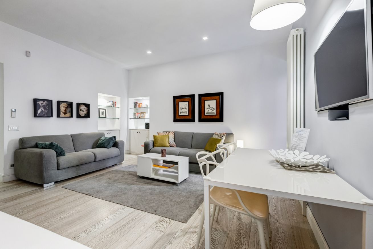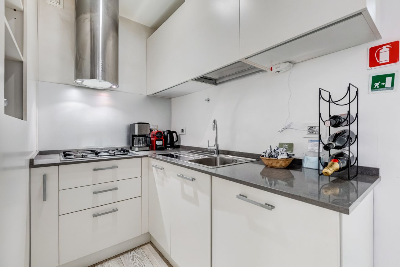Walking distance from the subway stop at Barberini (reachable in under 10 minutes from the main train station at Roma Termini), this studio was cleverly redone to maximize space while still offering some small luxuries to those who just need a place to crash at the end of long days spent exploring, but still want that place to look carefully designed with a modern traveler in mind.