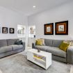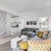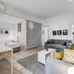 The living room/dining room features two comfortable couches, one of which doubles as a sofa bed. The studio can then accommodate up to four people.