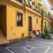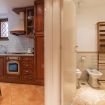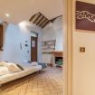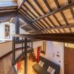 Few steps away from the popular daily outdoor market at Campo de’ Fiori, CieloTerra is conveniently situated in one of the most charming district of central Rome. From the balcony on the second floor (without elevator) of an ancient building, it overlooks a picturesque courtyard. It is a duplex apartment with a cozy living room downstairs, including a brick fireplace and a sofa bed for two, and a master bedroom under the skylighted wooden beams ceiling. There are a small but well equipped kitchen and a bathroom with a large shower on the lower level.