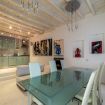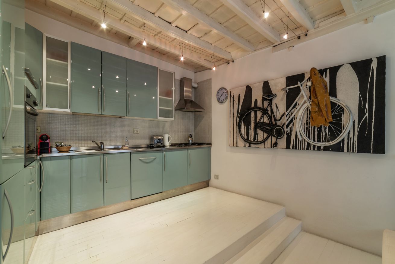 The main bedroom, as mentioned, is on a mezzanine - you will be sleeping under the original wooden beams, with A/C and plenty of closet space. Downstairs from the bedroom, you will find a cozy living room with a queen-sized sofa bed, a dining room, and a convenient all-purpose storage room, which includes the washer and dryer. The only bathroom comes complete with a shower. The kitchen is fully equipped (it includes a dishwasher, fridge, freezer, and oven) and will allow you to show your culinary skills!
