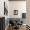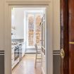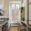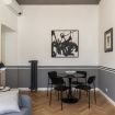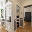 The apartment is situated on the sixth floor of a historic 1885 building, served by an elevator, and beautifully combines the charm of its original architecture with modern touches.