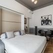 The tastefully decorated living room includes a practical Murphy bed that transforms into a comfortable double bed, increasing the apartment's total capacity to accommodate up to 4 guests.
