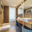 The bathroom features a very large shower and at the entrance of the apartment guests will find a washer (no dryer).