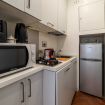 The apartment has been recently renovated, you'll notice the old wooden beams on the ceilings and the wooden floors. The owners have chosen to preserve some of the historic elements while incorporating modern necessities and comforts. As a result, you'll find that the small kitchen is equipped with all the basics for a quick meal, including a stove, microwave, kettle, toaster and Nespresso machine. Via della Frezza also has a washing machine (no drying capabilities).