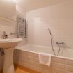 The vast livingroom welcomes you in a informal space divided in two: at the low ground a confortable couch that becomes a king-sized devenport and the big table form the most vivid part of the house, while the mezzanine is an independent space where you can stay in serenity. Right from the left of the living room you get to the fully equipped kitchen with a small exterior space where there’s the washing machine. On the right there’s the night zone: the spacious and warm double bedroom thanks to the French window, and the bathroom with the bath tub. Either the bathroom and the kitchen are hight ceilined confortable for people of 190cm (not higher!).