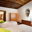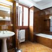 All the rooms have a parquet floor and ceilings with wooden beams, whereas tiles cover the two bathrooms (one with a shower, another with a tub-shower) and the kitchen with its adjacent dining room. Another extensible dining table is in the living room, and six people can comfortably sit around it. The living room has also plenty of seats for relaxation.