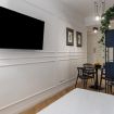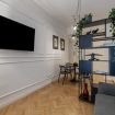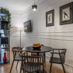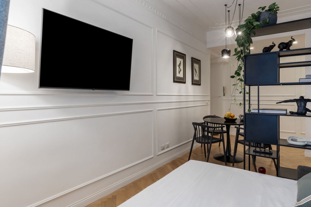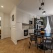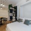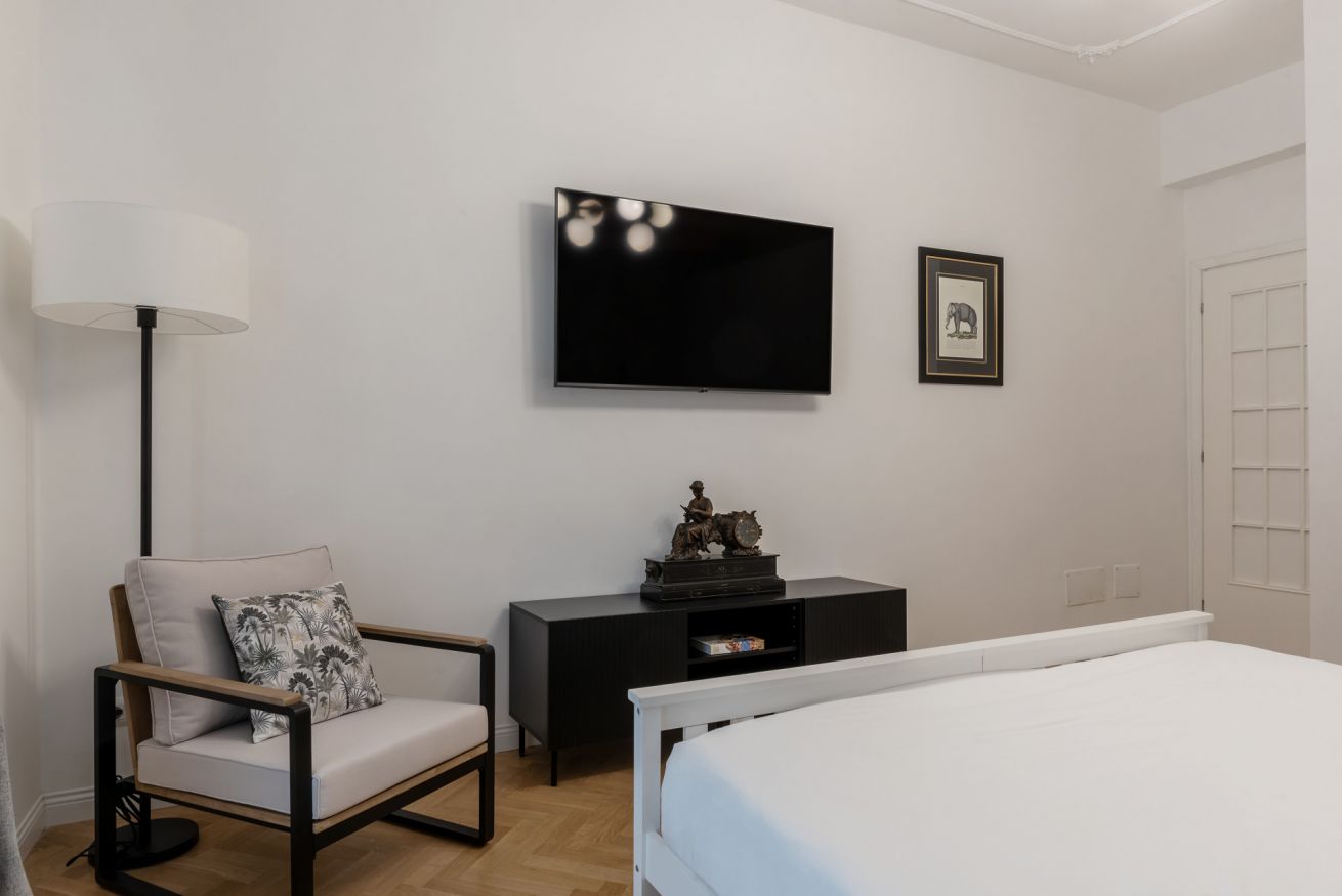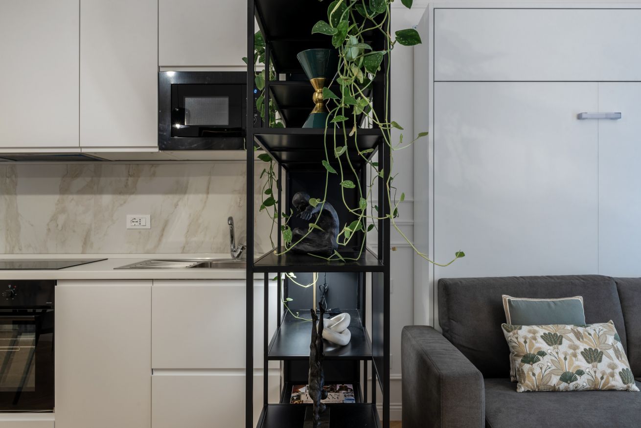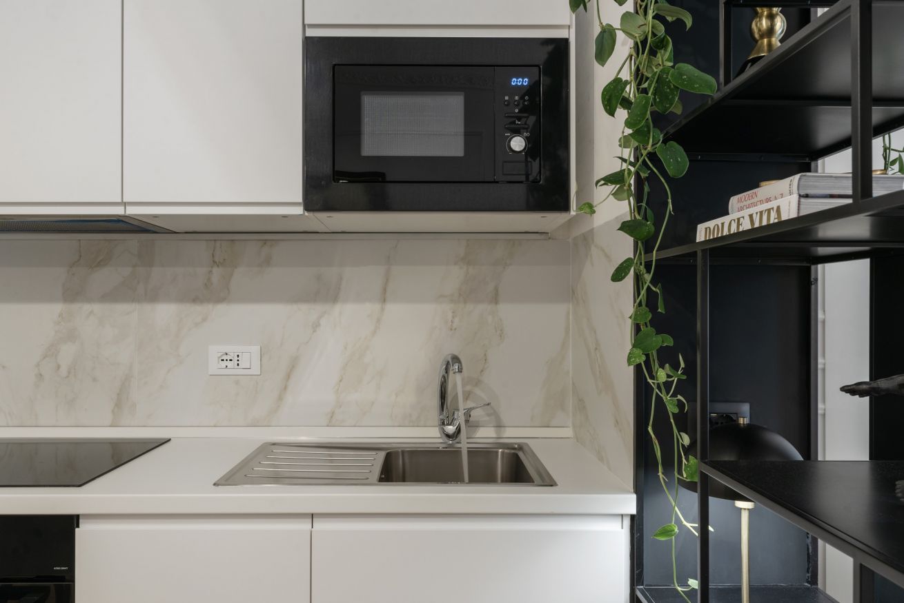 Toscana 2 is a one-bedroom apartment that has been recently renovated in a decidedly mid-century modern style, while preserving some of the original features of the accommodation, such as the hardwood floors. Guests enter into a dining/living room/kitchenette that includes a comfortable double Murphy bed, which effectively means that this space can sleep up to four people. The master bedroom has a large wardrobe.