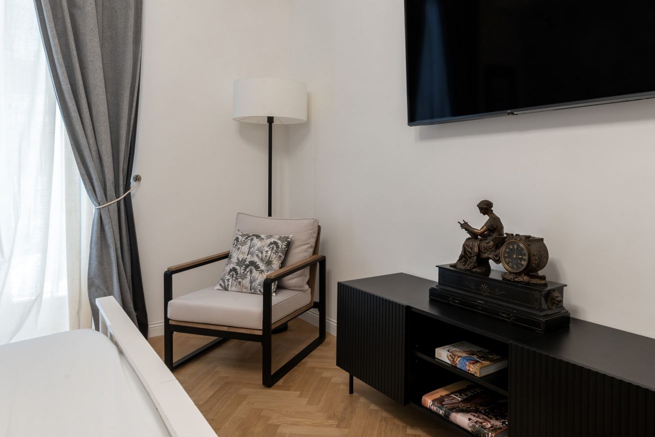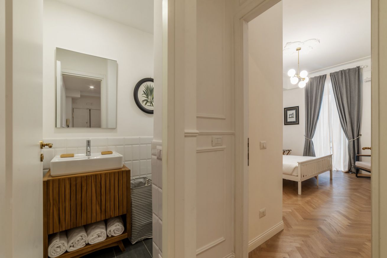 Rich in natural light, Toscana 2 comes with a small balcony in the main bedroom, independent air heating and air conditioning in all rooms. Our guests will be able to connect to their favorite streaming service (if available in Italy) through two Smart TVs. A Wifi connection is offered free of charge. We regret that this apartment is not suitable for smokers.