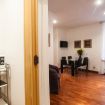 Entry is into the living area furnished with a dining table seating 4, a 2-seater sofa, which can be turned into a comfortable sofa bed if needed, and an armchair. This area overlooks the kitchen, small but fully equipped, that a sliding door allows to hide from the living zone. From here, a small corridor leads to the bathroom (with shower) and the bedroom.