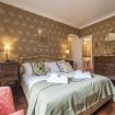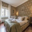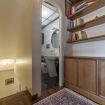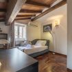 Wooden floors and wooden beams on the ceiling are a call back to the long history of this area of the city, while the decor is in a classic Italian style, featuring precious rugs and antique furnishings.